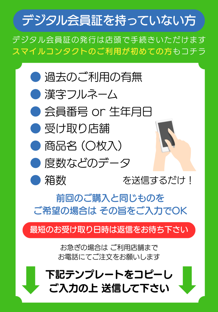 ・スマイルコンタクトをご利用いただいたことはありますか?(例: はい or いいえ)