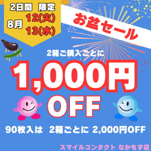 お盆セール 2025.08.10 Share Tweet feedly Pin it Tweet Share feedly Pin it 関連記事 スマイルコンタクト・ティアーレおまとめ買いキャンペーン コンタクトレンズとホワイトニング ネオサイトワンデースマートフォーカスリングUV スマイルコンタクトのロゴ スマホやパソコンで目を酷使しがちな現代人の瞳をサポート!【新設計◎シード ビュ... EX-O2 装着時間とは?1日何時間つけていいの?? アクアロックスワンデーUVシントーリック