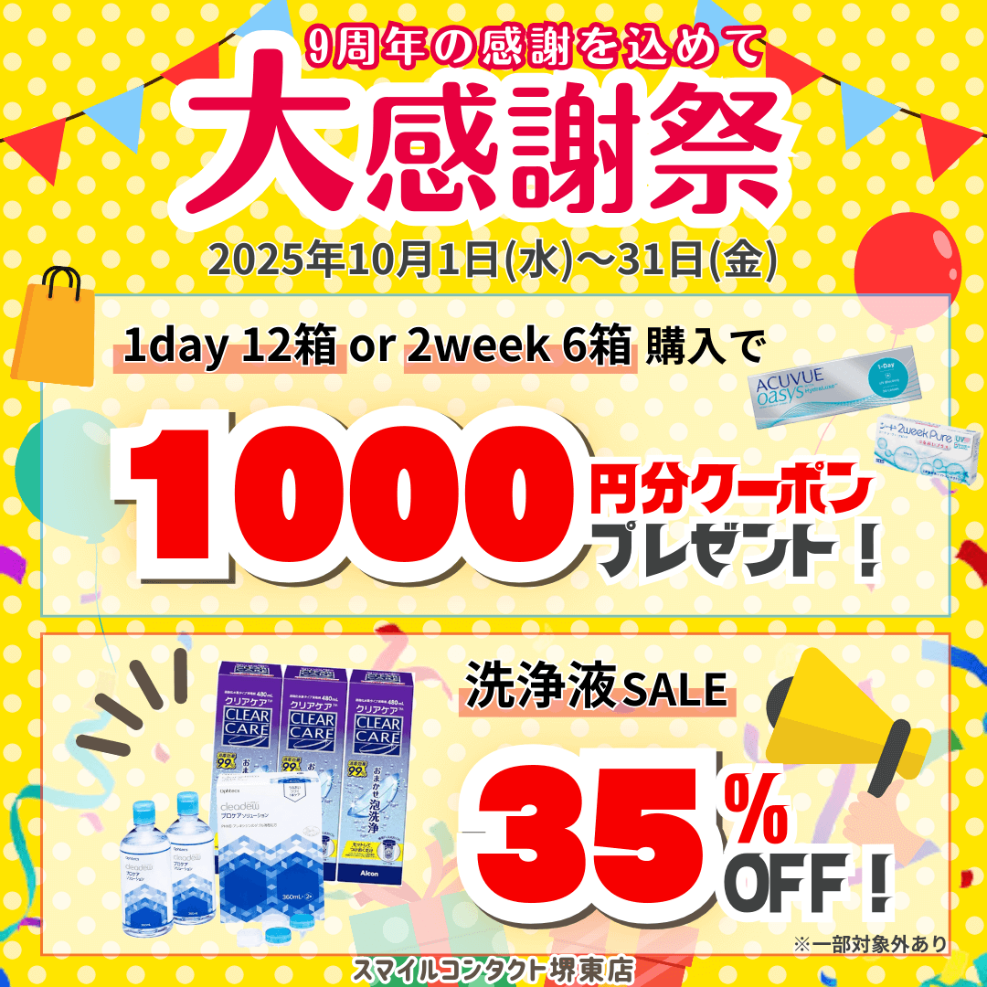 【第一弾】スマイルコンタクト堺東店 ★9周年★ ~大感謝祭SALE~