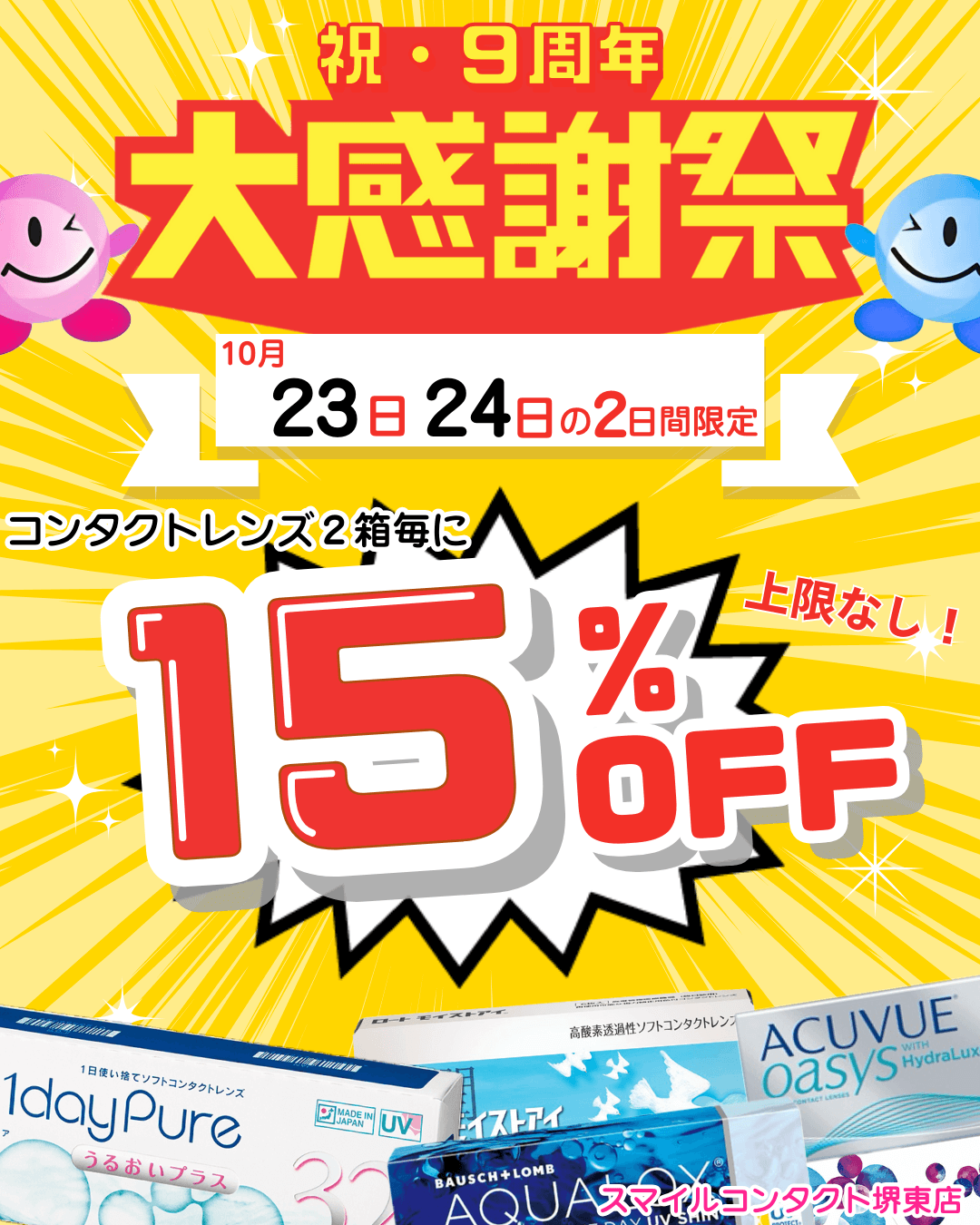 【第二弾】スマイルコンタクト堺東店 ★9周年★ ~大感謝祭15%OFF~
