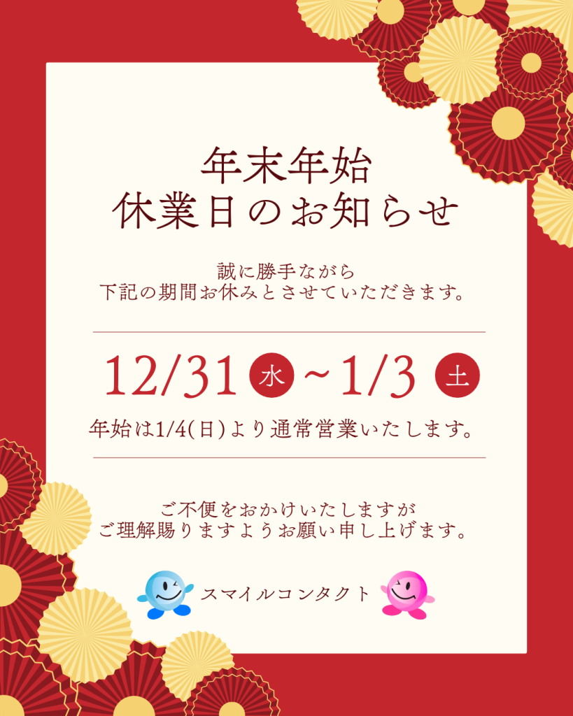 スマイルコンタクト年末年始休業のお知らせ