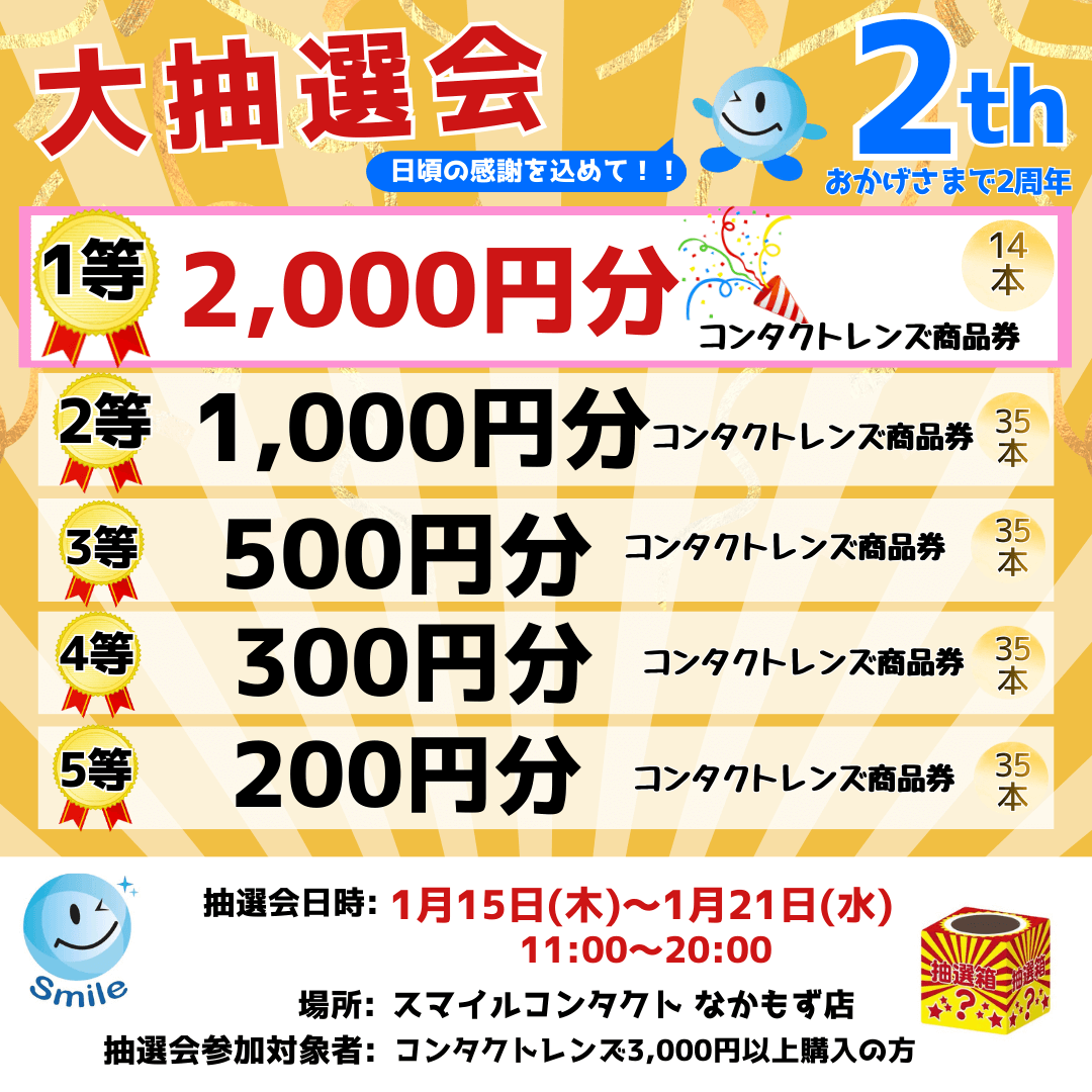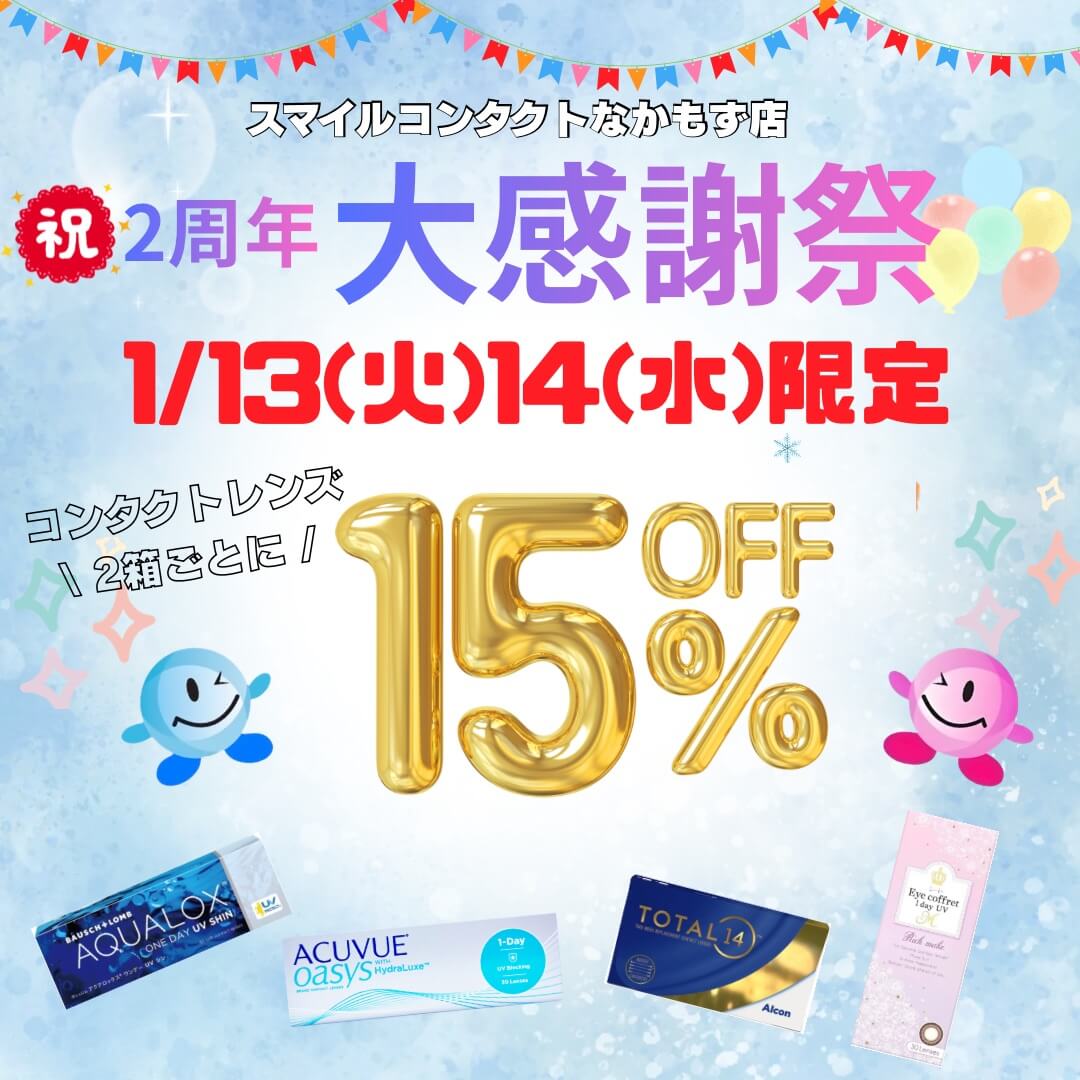 ★スマイルコンタクトなかもず店★祝2周年 大感謝祭 ★15%OFFセール!!大抽選会!!