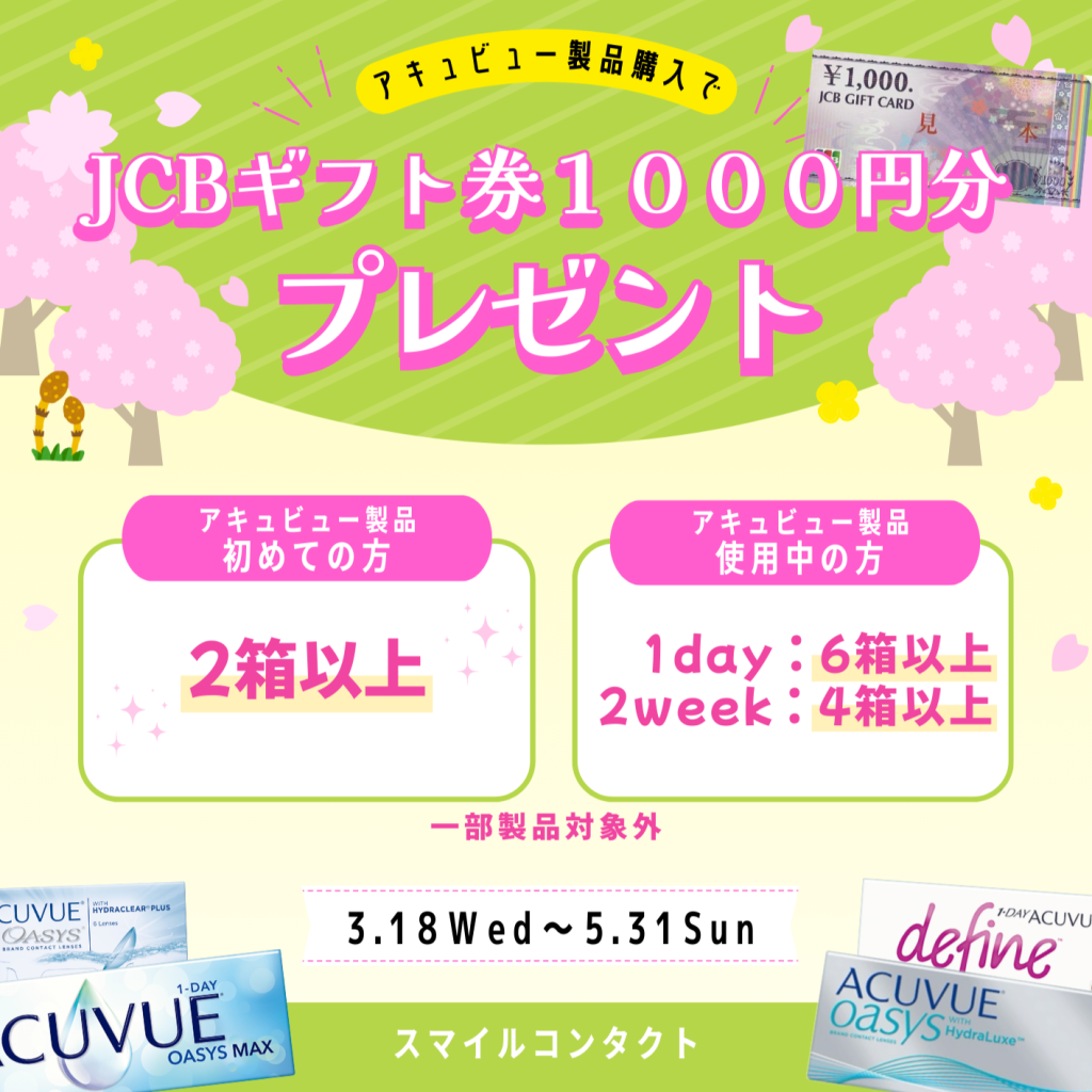 アキュビュー製品購入でJCBギフト券プレゼント🌸♪スマイルコンタクト